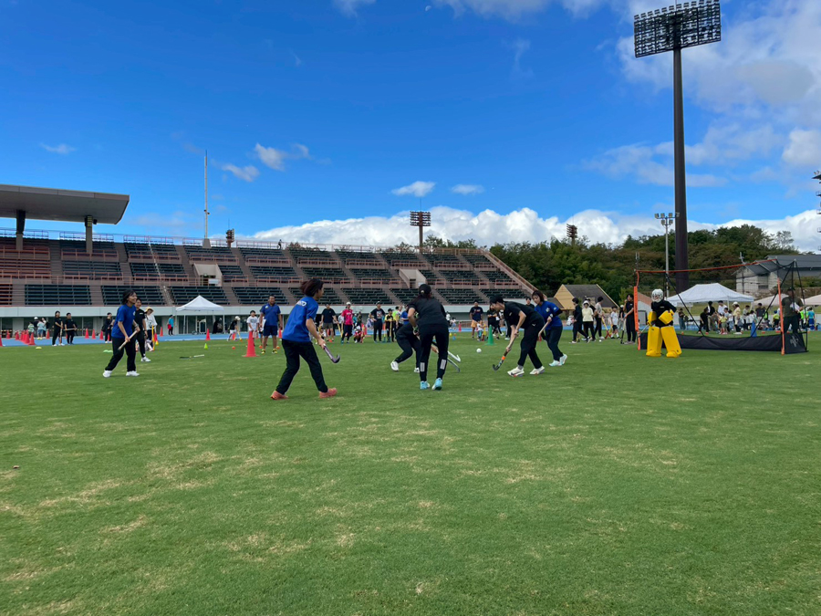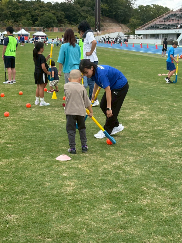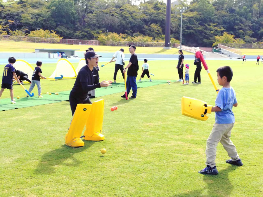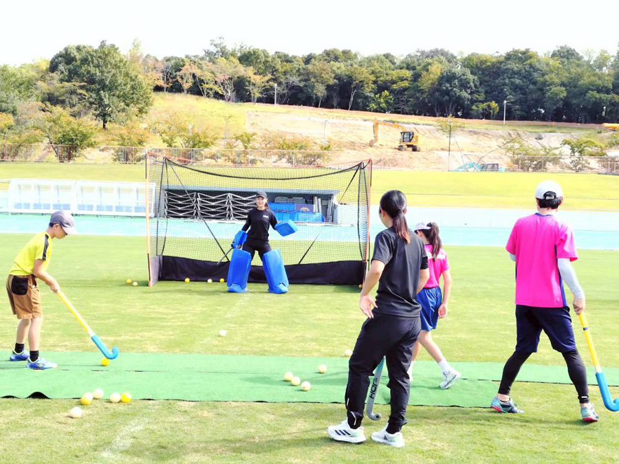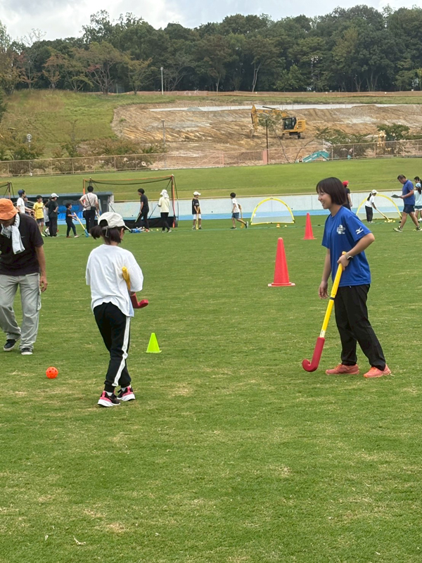 スティックの持ち方を教える #4永田選手・#16田渕選手