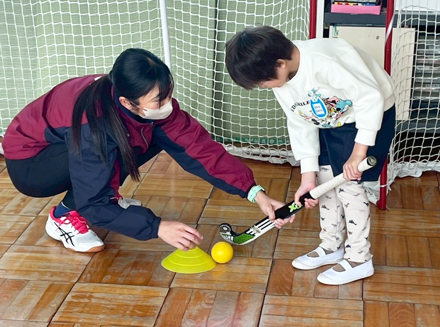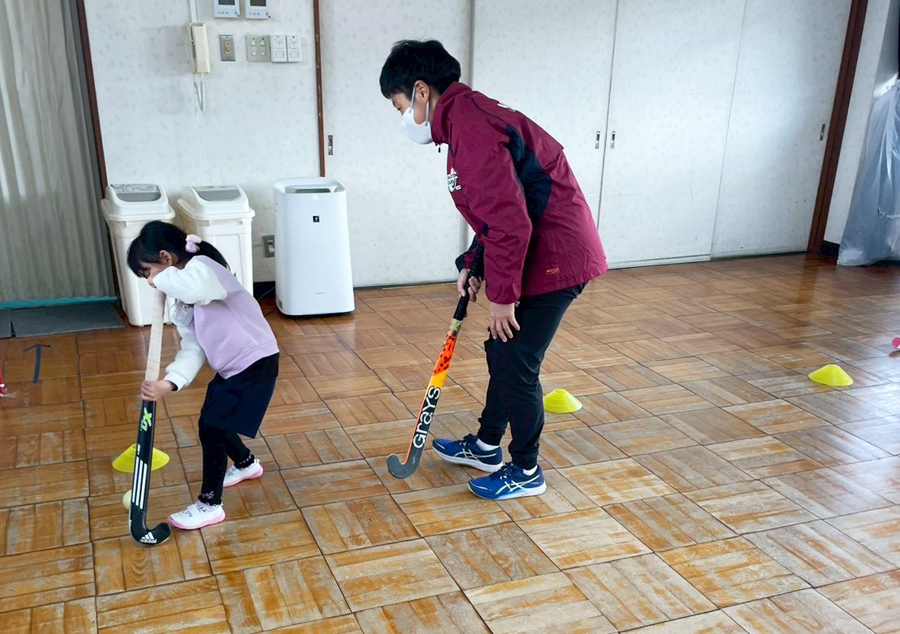 スティックの持ち方を教える#10岩尾選手