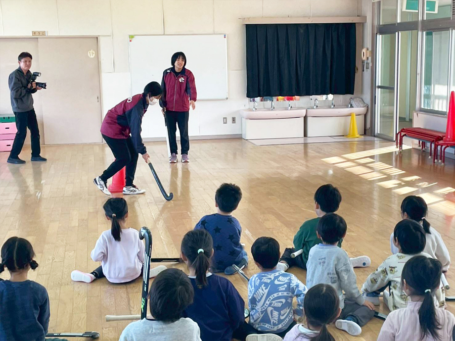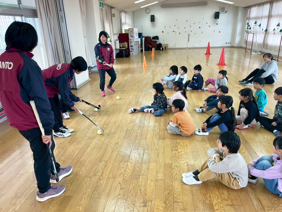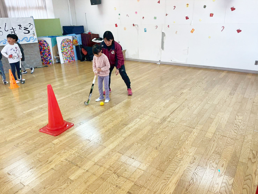 体験前には全員で鬼ごっこをして体を温めます